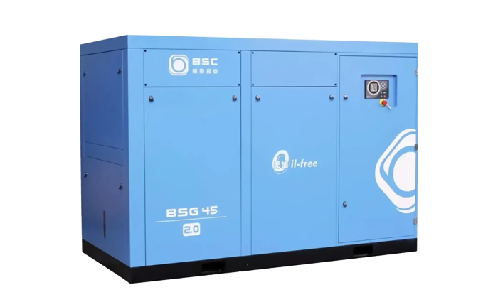 Sopladores de tornillo libres de aceite con variador de velocidad y motor de magnetos con enfriamiento por aire.